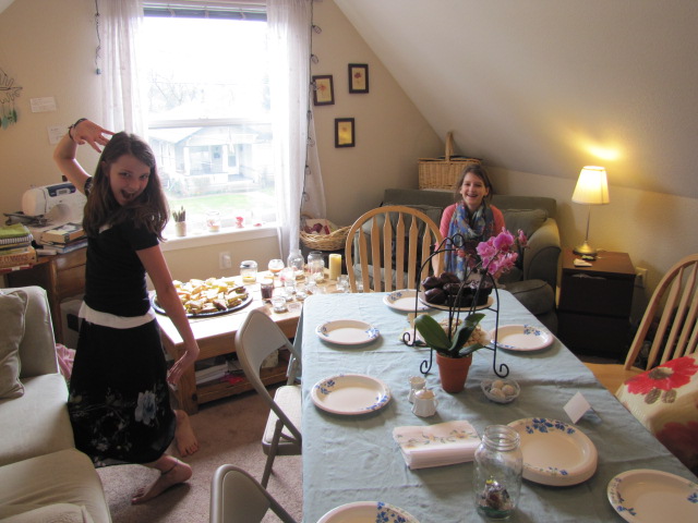 (I'm serious. And it was their idea, too. They DRESSED UP and refilled tea pots and brought trays and trays of food up and down my stairs for over an hour. And responded to the names Carson, Alfred, and William. Do YOU know any twelve year old boys who do that?!) (A. was SO excited to be on "the boys' team".)